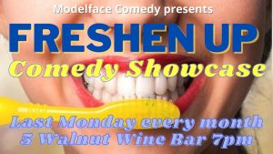 Freshen Upward One-act Showcase is the last mon of every month. The showcase highlights the best local comics from the Freshen Upward Open Mic that happens every Monday at 5 Walnut Vino Bar. Local comics come out each week to try all of their new material and the best come up back for the showcase. Cameron Davis and Morgan Bost host Freshen Up and this month we likewise feature TBA . no encompass, only tipping is highly encouraged